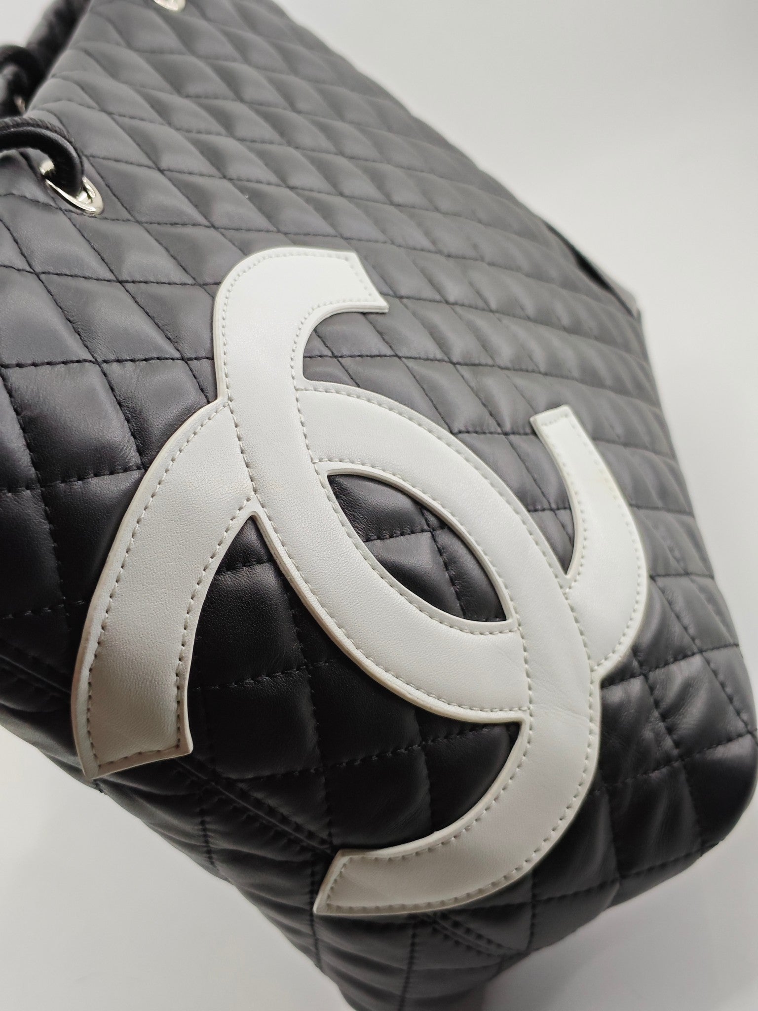 Werten Sie Ihre Alltagsgegenstände mit dieser eleganten, gesteppten Tragetasche auf, die sich durch einen zeitlosen Schwarz-Weiß-Kontrast und eine glatte Oberfläche in Lederoptik auszeichnet.