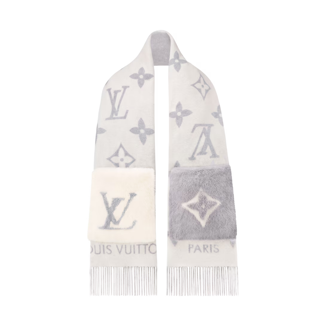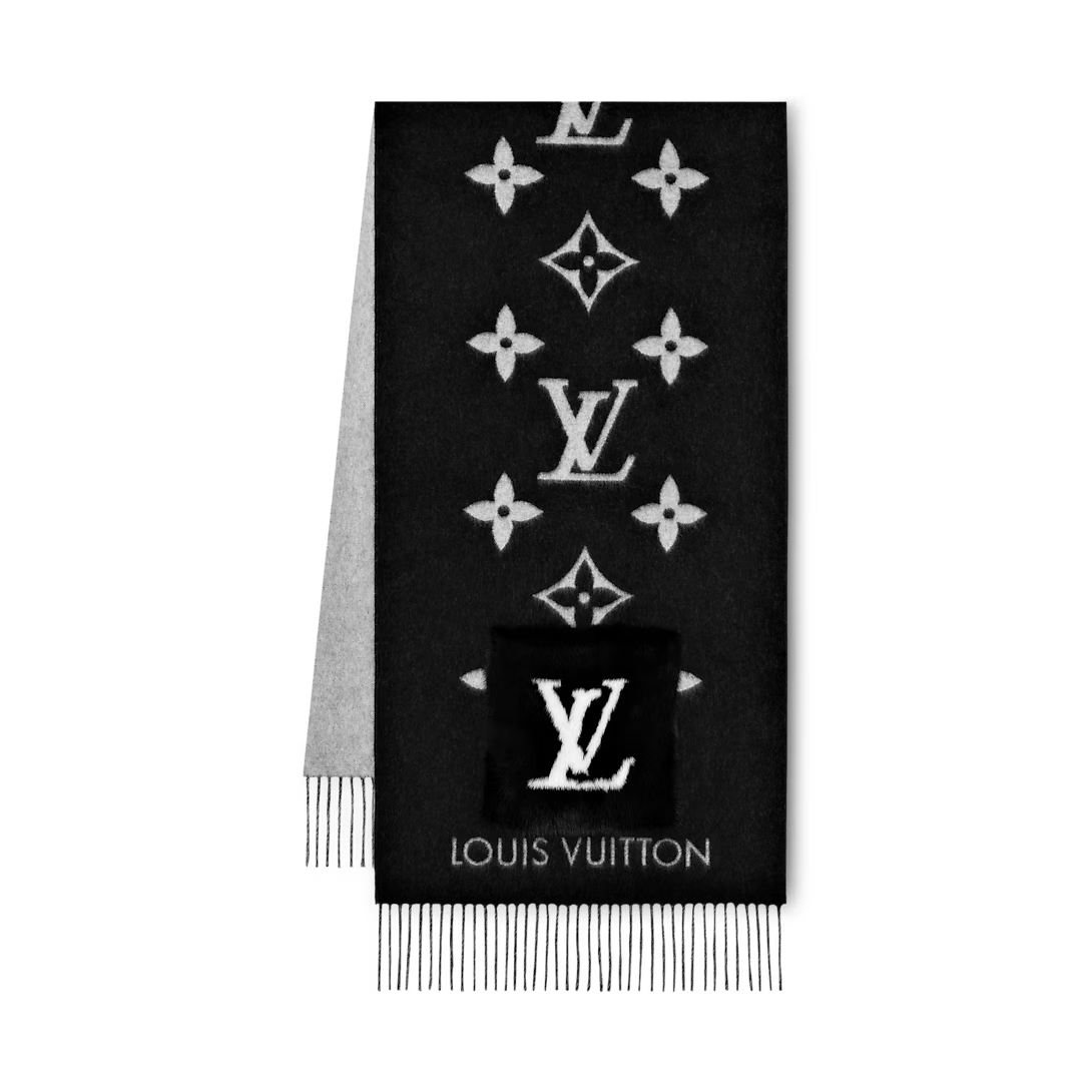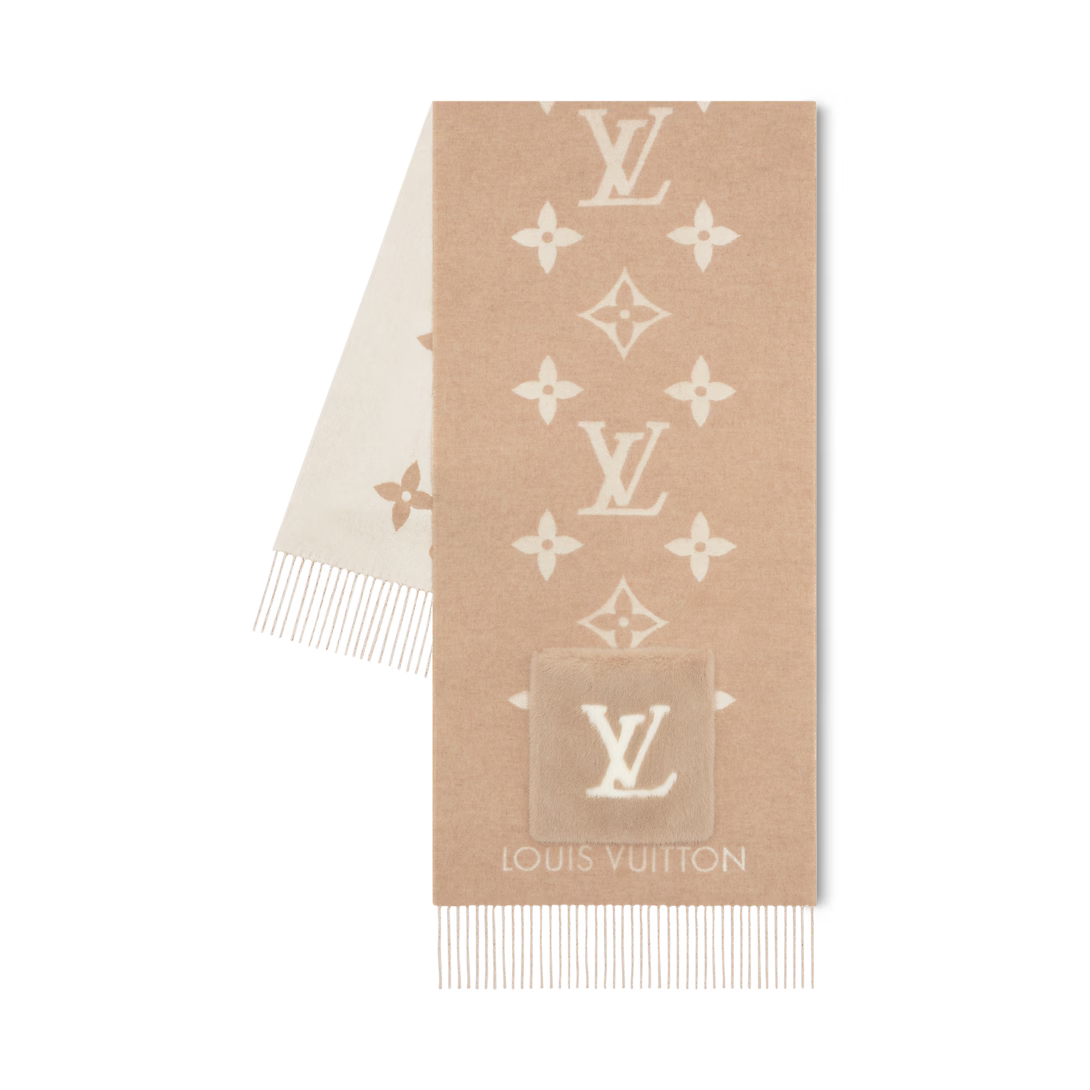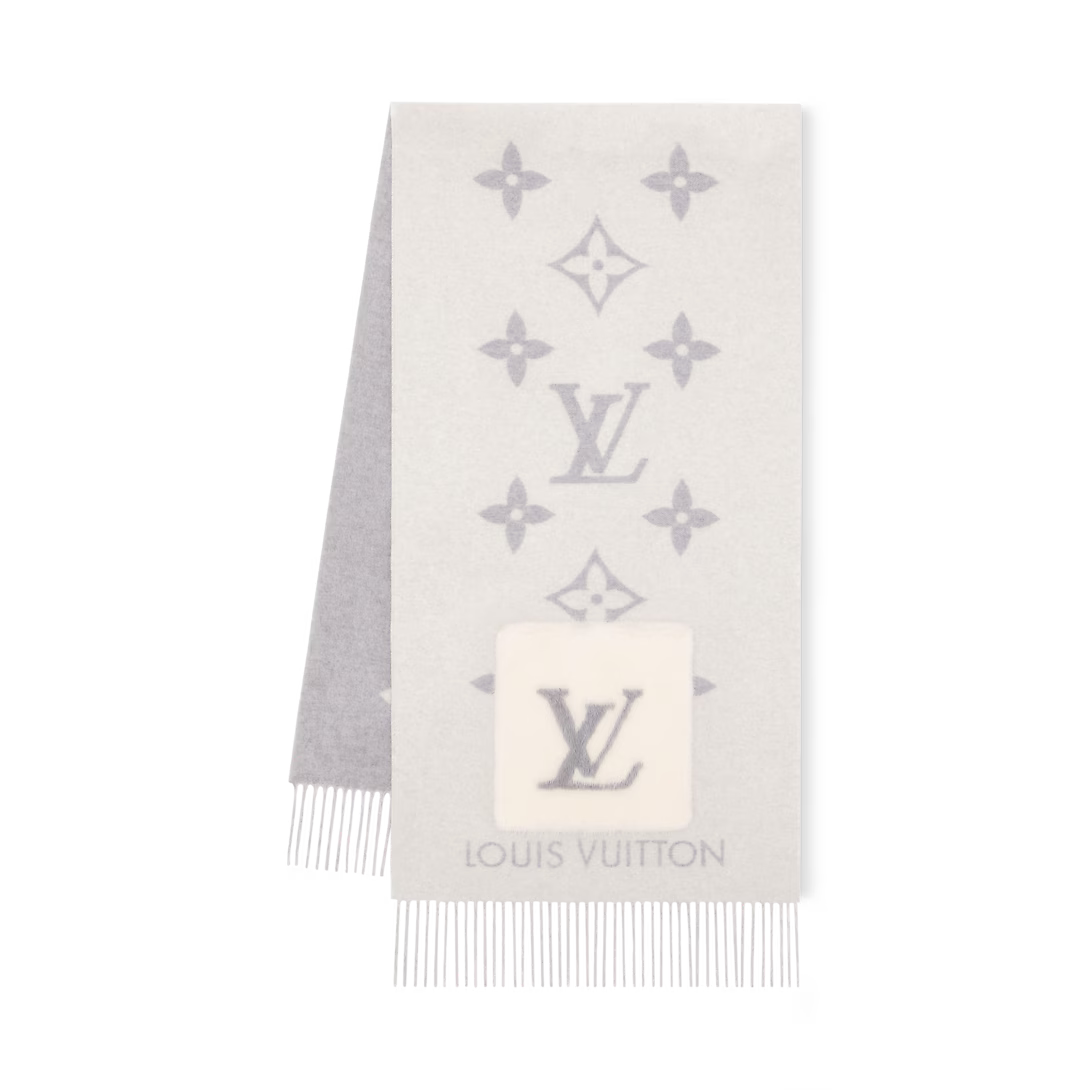 Envuélvete en comodidad y elegancia con este Bufanda de punto reversible de estilo lujoso, diseñado con un patrón de monograma clásico que agrega sofisticación instantánea a cualquier atuendo de invierno.